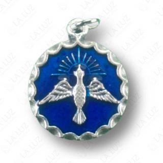 • Medalla del Espíritu Santo azul en metal plateado, símbolo de fe, guía y protección divina. Ideal para colgante, regalo religioso o sacramento.