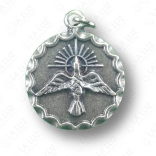 • Medalla del Espíritu Santo plateado en metal plateado, símbolo de fe, guía y protección divina. Ideal para colgante, regalo religioso o sacramento.