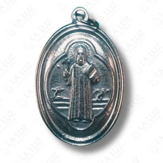Fabricada en metal plateado, con relieve definido y formato ovalado, esta medalla es ideal para llevar como colgante, colocar en el hogar, acompañar un rosario o regalar como signo de fe y protección espiritual.