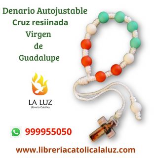 • DENARIO CON CRUZ DE MADERA RESINADA DE LA VIRGEN DE GUADALUPE