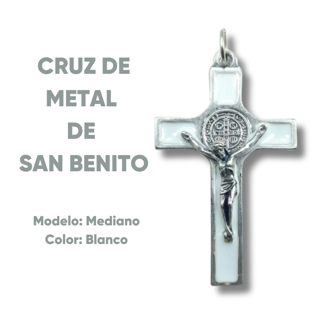 CRUZ DE SAN BENITO DE METAL – Modelo Mediano (Blanco)