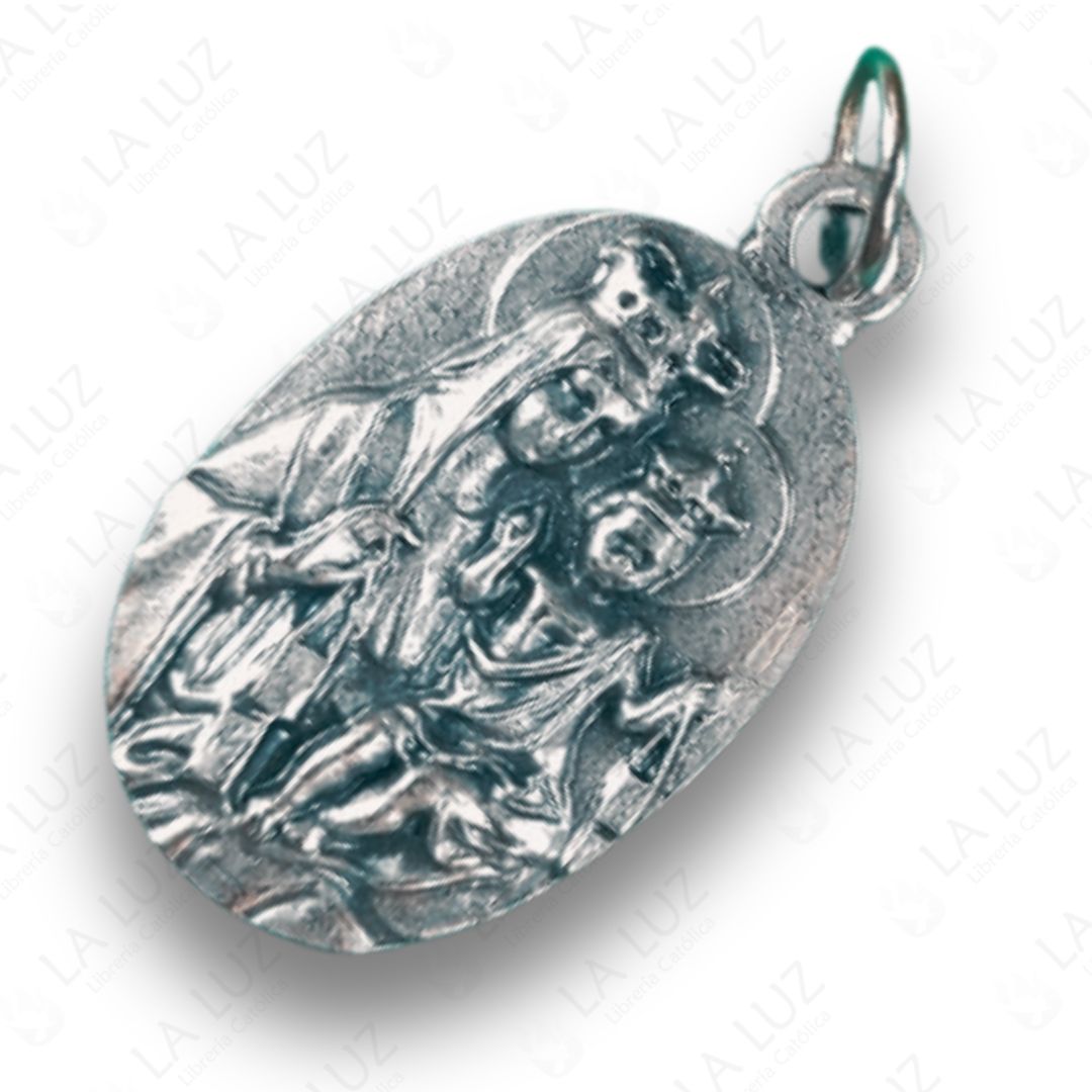 Medalla de la Virgen del Carmen en metal plateado, doble cara. Símbolo de protección, fe y devoción mariana. Ideal para uso diario o regalo religioso.