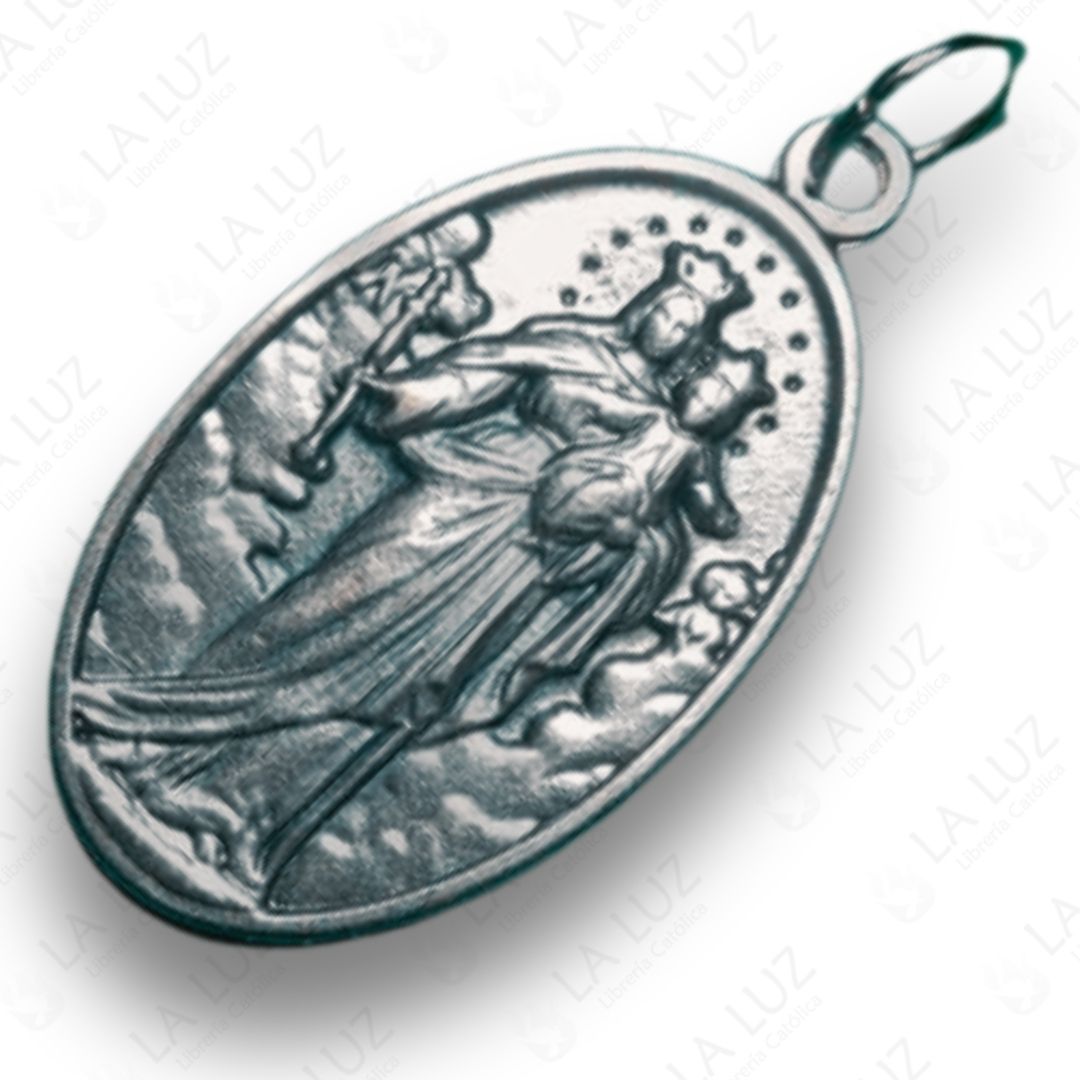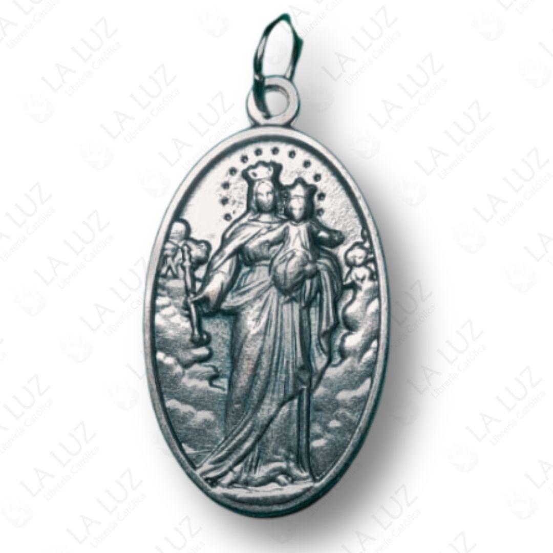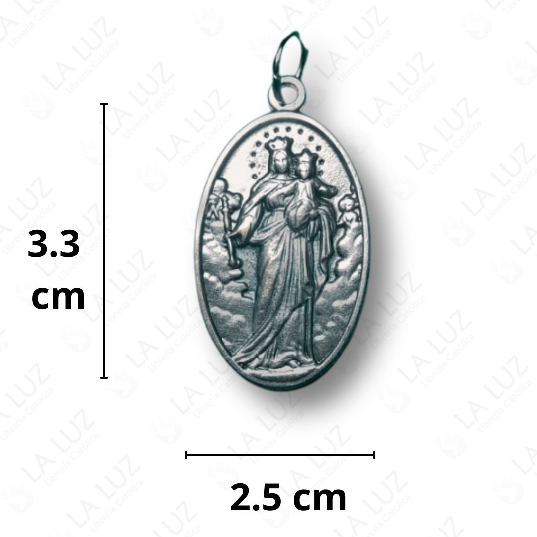 MEDALLA DE MARIA AUXILIADORA – Metal plateado ovalado