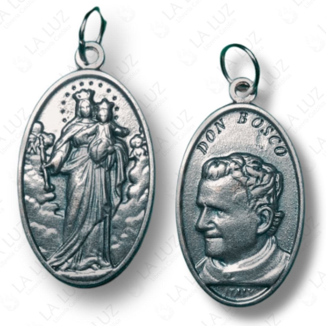 Medalla de María Auxiliadora y en el anverso de Don Bosco, símbolo de protección, educación y amor maternal.