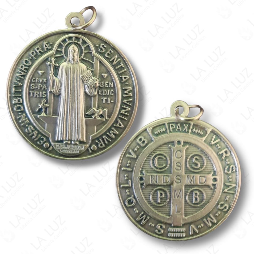 MEDALLA DE SAN BENITO – Metal plateado redondo mediano