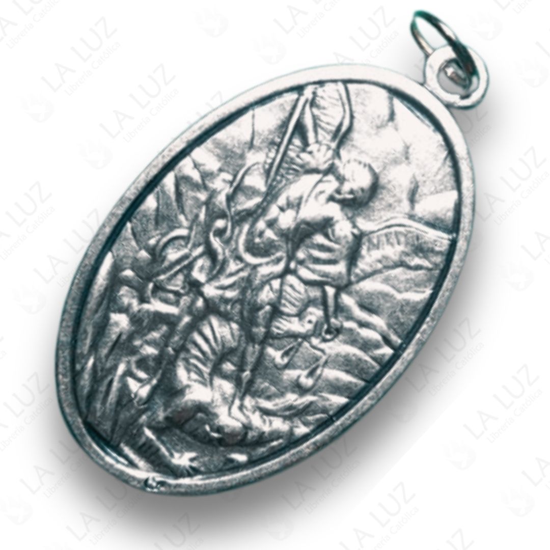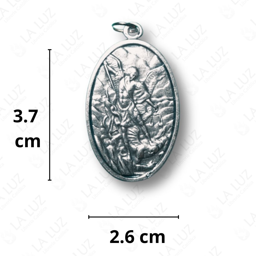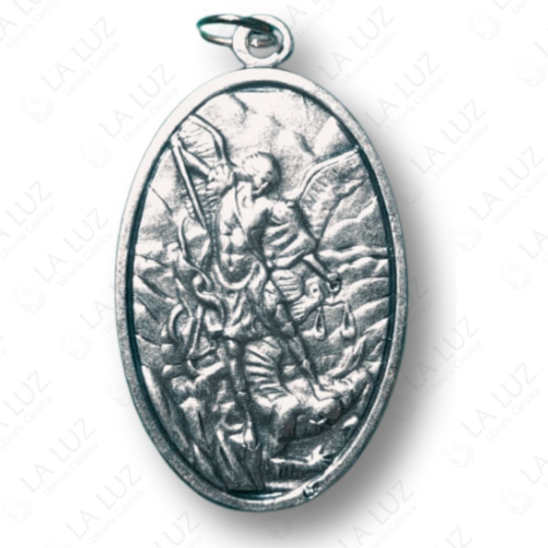 Fabricada en metal plateado con finos relieves y forma ovalada, esta medalla es ideal para uso personal, regalo religioso o como amuleto de protección diaria.