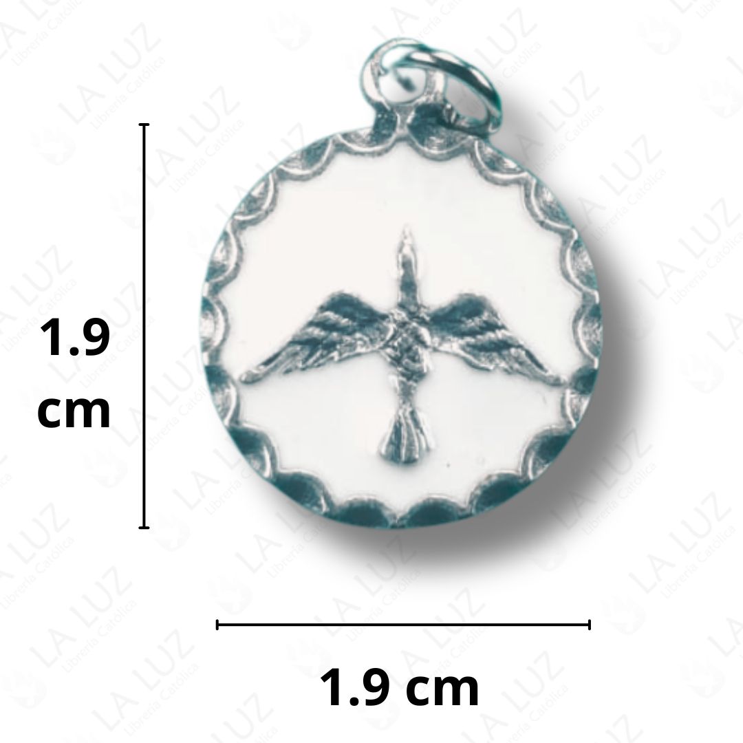 Medalla del Espíritu Santo blanca en metal plateado, símbolo de fe, guía y protección divina. Ideal para colgante, regalo religioso o sacramento.
