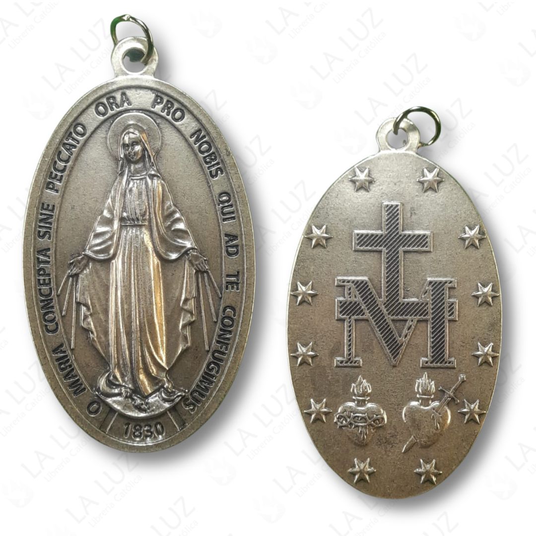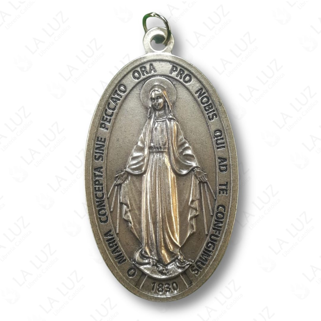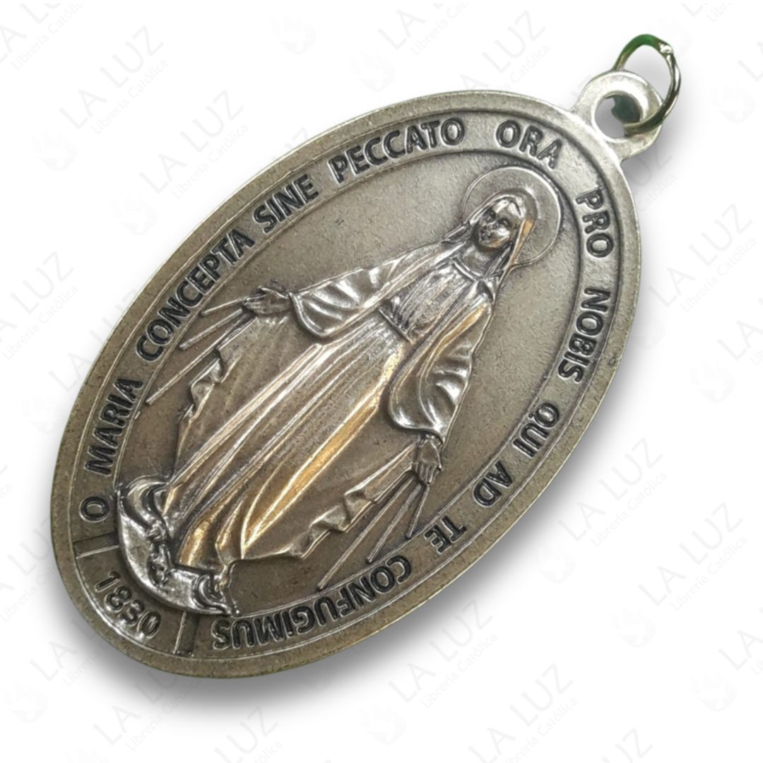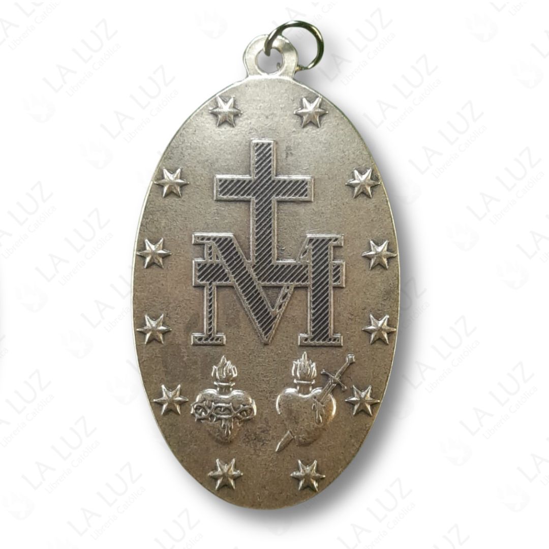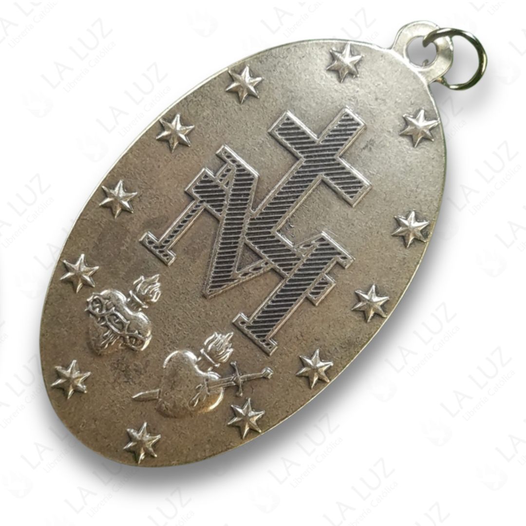 Medalla Milagrosa grande de la Virgen María en metal plateado, símbolo de protección, fe y gracia divina. Ideal para colgar, regalo religioso o uso devocional diario.