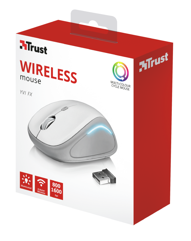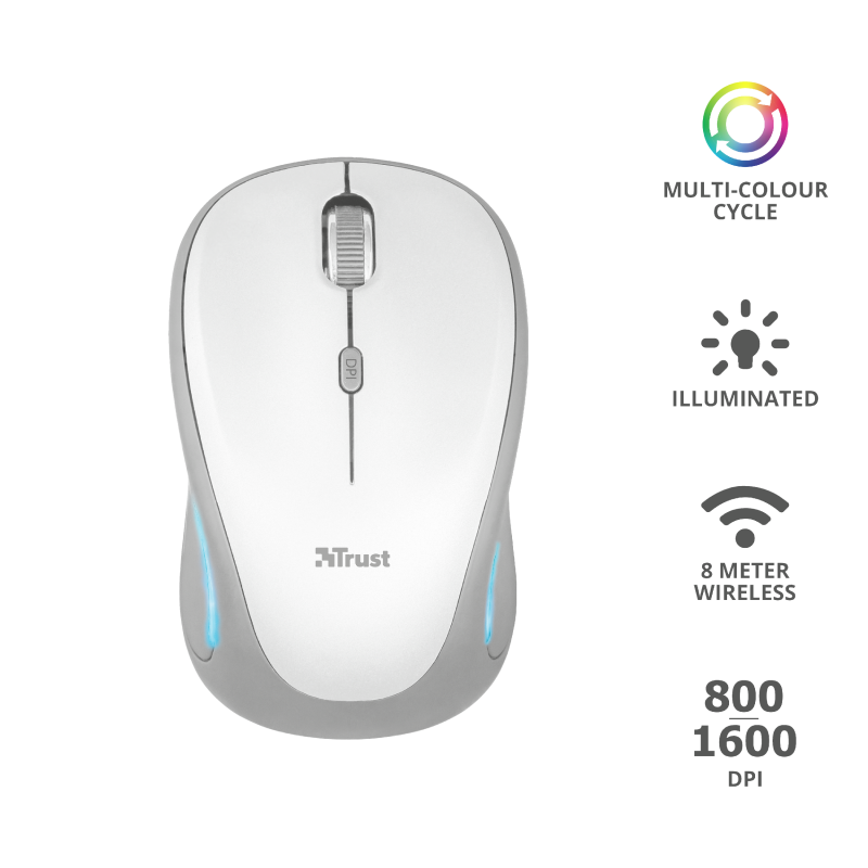 Mouse óptico inalámbrico con iluminación led, botón de velocidad de dpi 800 – 1600 DPI, micro receptor USB, alcance inalámbrico hasta 8m, para diestros y zurdos, tipo de batería AA, compatible con Chrome, Mac y Windows, color blanco.