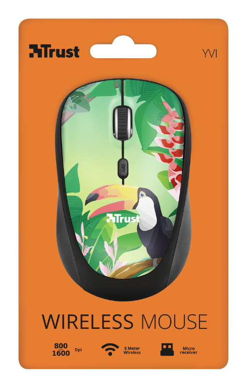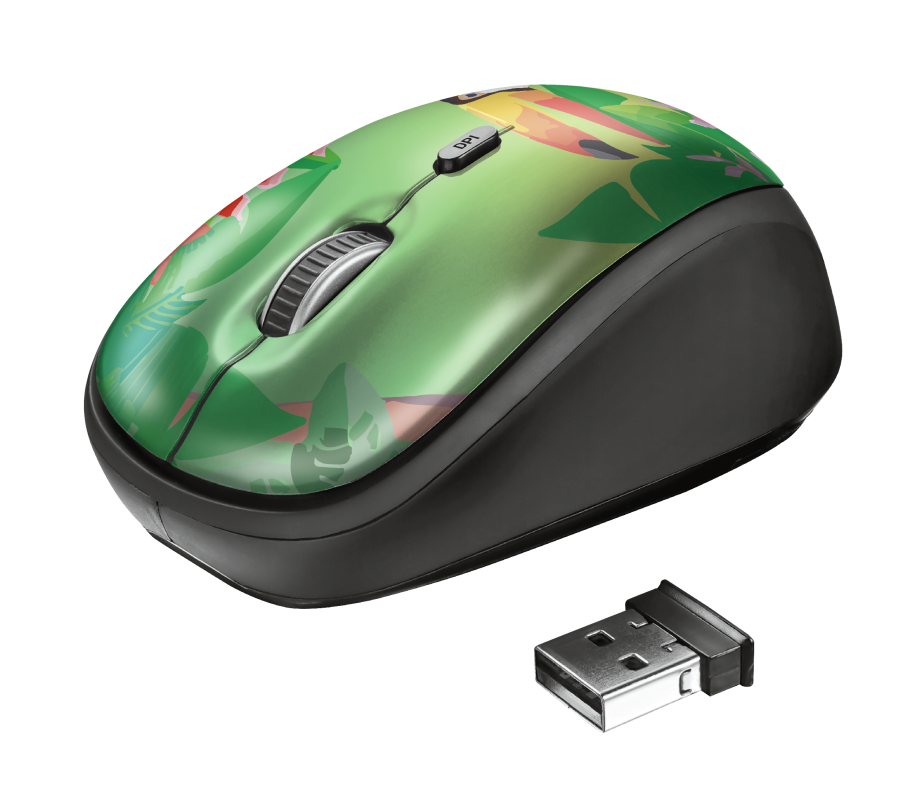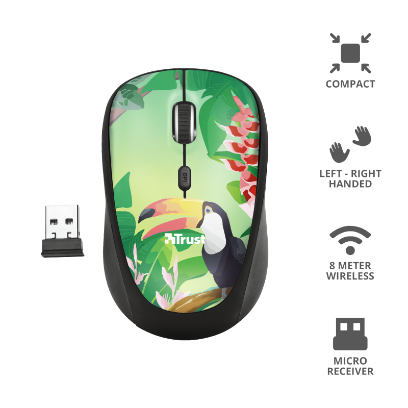 Mouse óptico inalámbrico, botón de velocidad de dpi 800 – 1600 DPI, micro receptor USB, alcance inalámbrico hasta 8m, para diestros y zurdos, tipo de batería AA, compatible con Chrome, Mac y Windows, diseño de tucán.