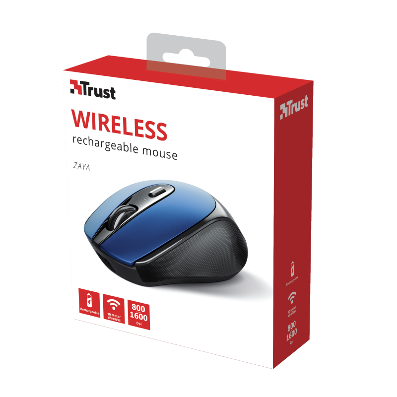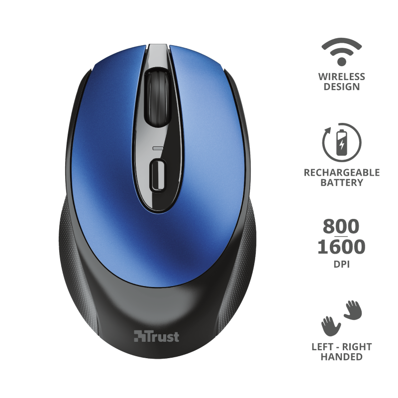 Mouse óptico inalámbrico recargable, batería recargable, micro receptor USB, 4 botones incluido botón de velocidad (800 – 1200 – 1600 PPP), cable USB-c para carga, compatible con Windows, Mac y Chromebook, color azul / negro.
